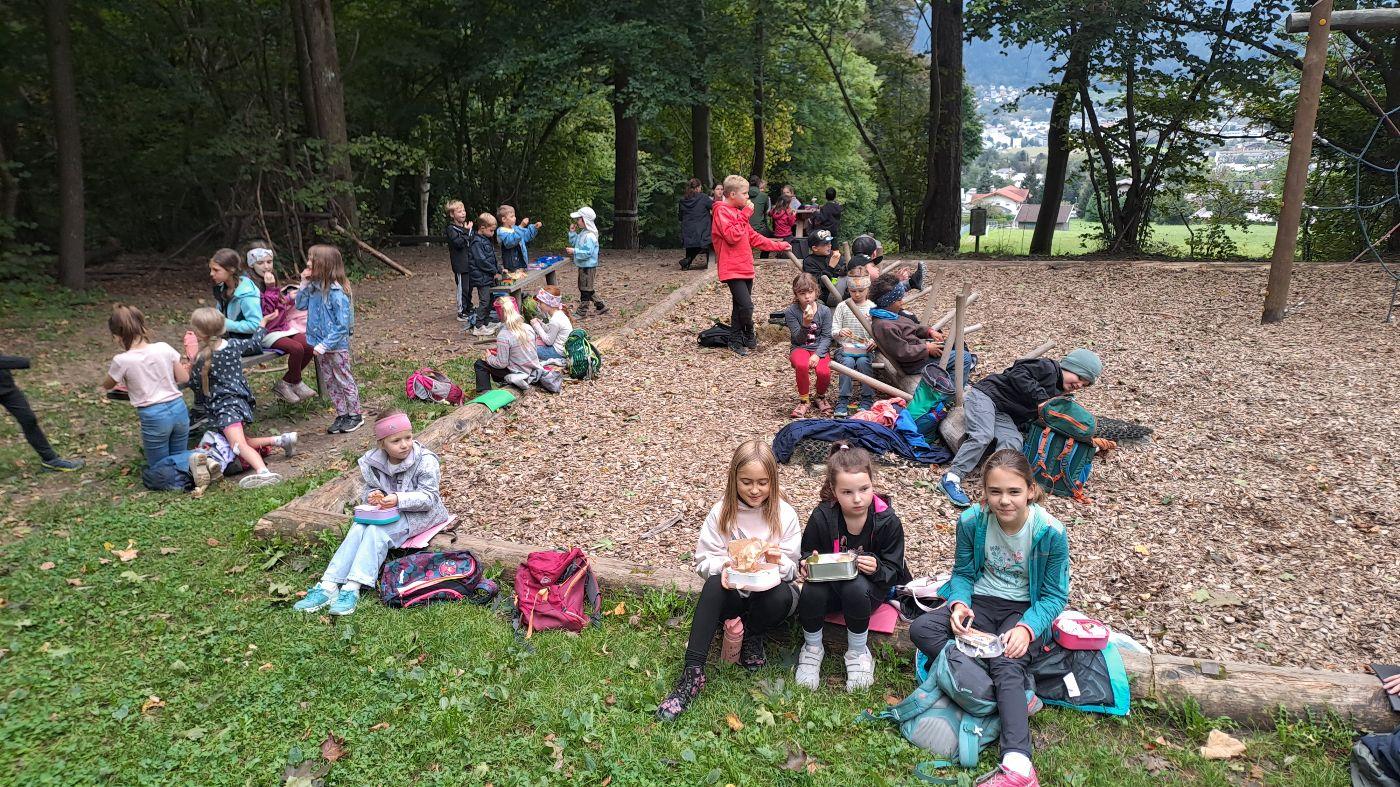Heute machten sich (fast) alle Klassen der VS-Hötting auf den Weg, um gemeinsam über den Planötzenhof zum Grünen Boden zu wandern. Die vierten Klassen begleiteten ihre Patenklassen, die "Ersteler" und die dritten Klassen schlossen sich an. Es war ein sehr schöner und gelungener Wandertag und die Kinder hatten viel Spaß und Gelegenheit sich näher kennen zu lernen. Zu Mittag waren dann alle Kinder erschöpft aber wohlbehalten wieder in der Schule.